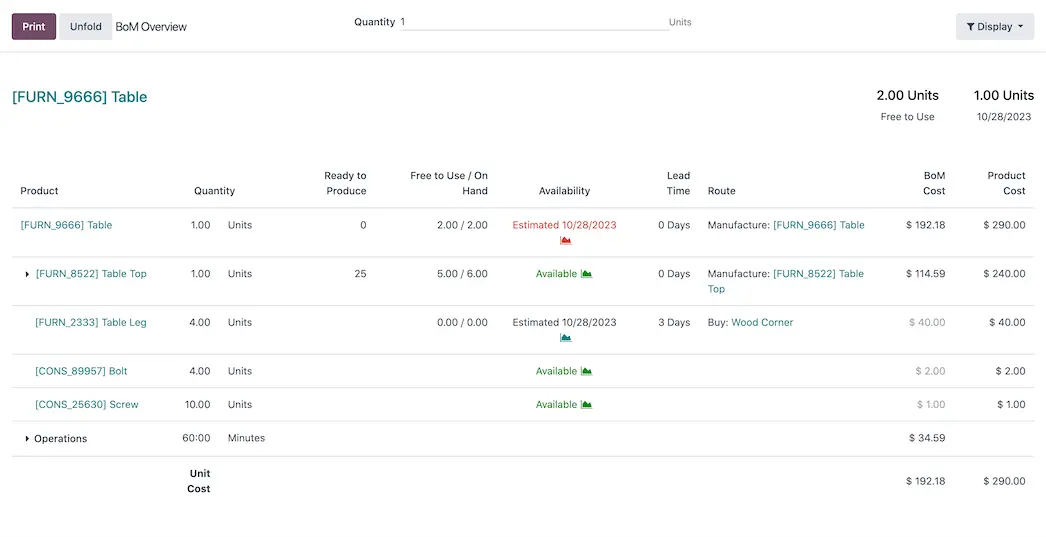 Simulieren Sie Fertigungsaufträge mit aktueller Kapazitätsplanung, prüfen Sie Komponentenverfügbarkeit und behalten Sie die Kosten jederzeit im Blick.